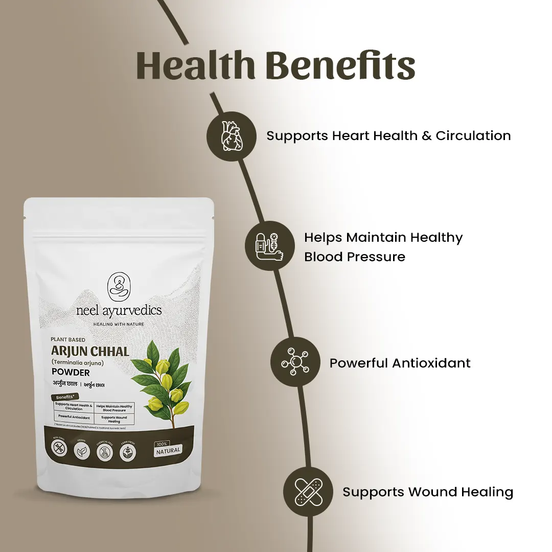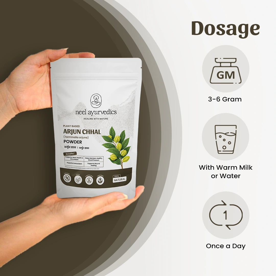En Neel Ayurvedics, presentamos nuestro polvo Arjun Chhal, una maravilla herbal derivada de la corteza de Terminalia arjuna, celebrada en Ayurveda por sus propiedades saludables para el corazón.