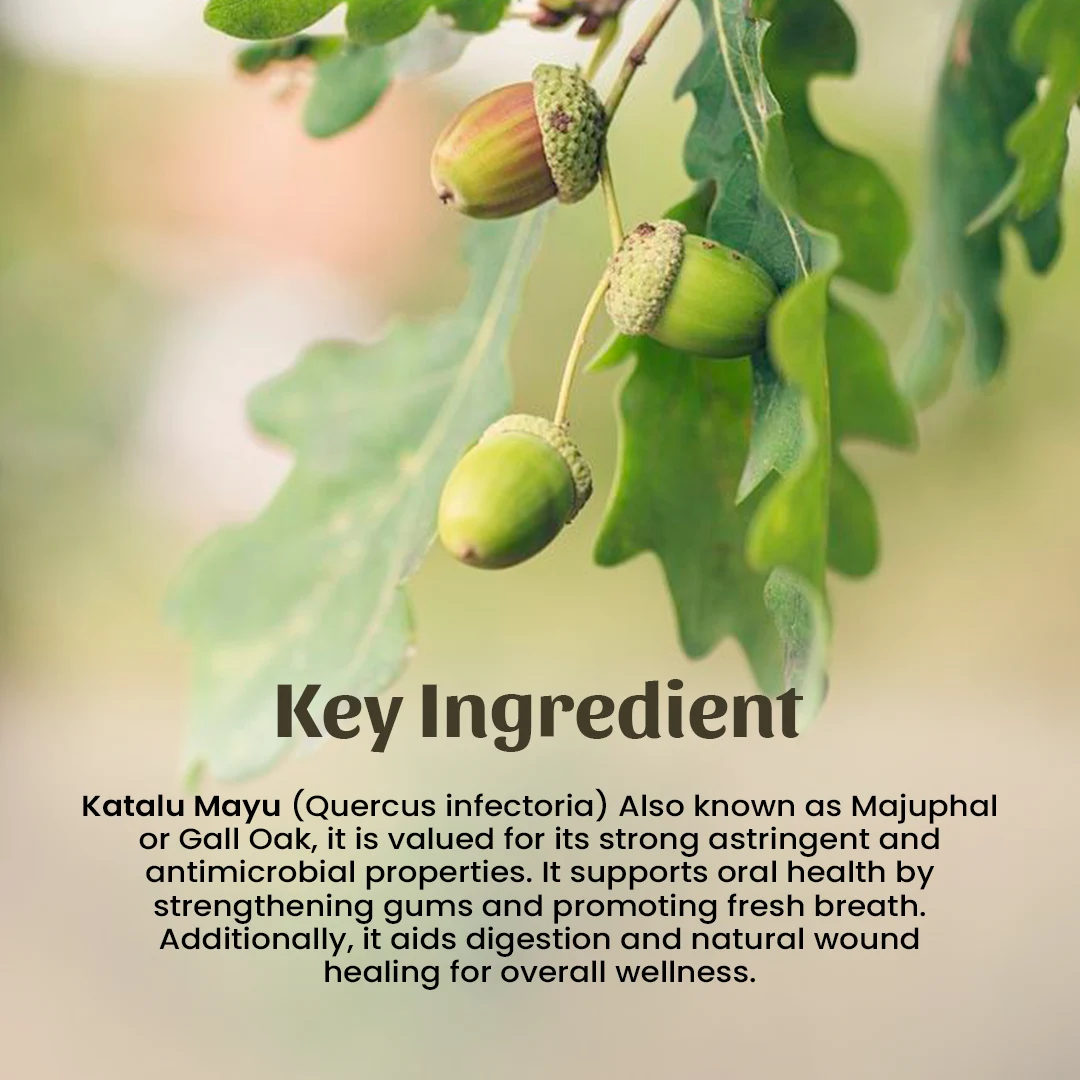 Katalu Mayu (Majuphal) Churna viene en paquetes de 25, 50 g, 100 g, 250 g, 500 g y 1 kg.